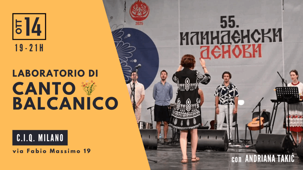 Un’esperienza aperta a tutte le voci, per esplorare il canto tradizionale dei Balcani attraverso la pratica, l’ascolto e il gioco.
