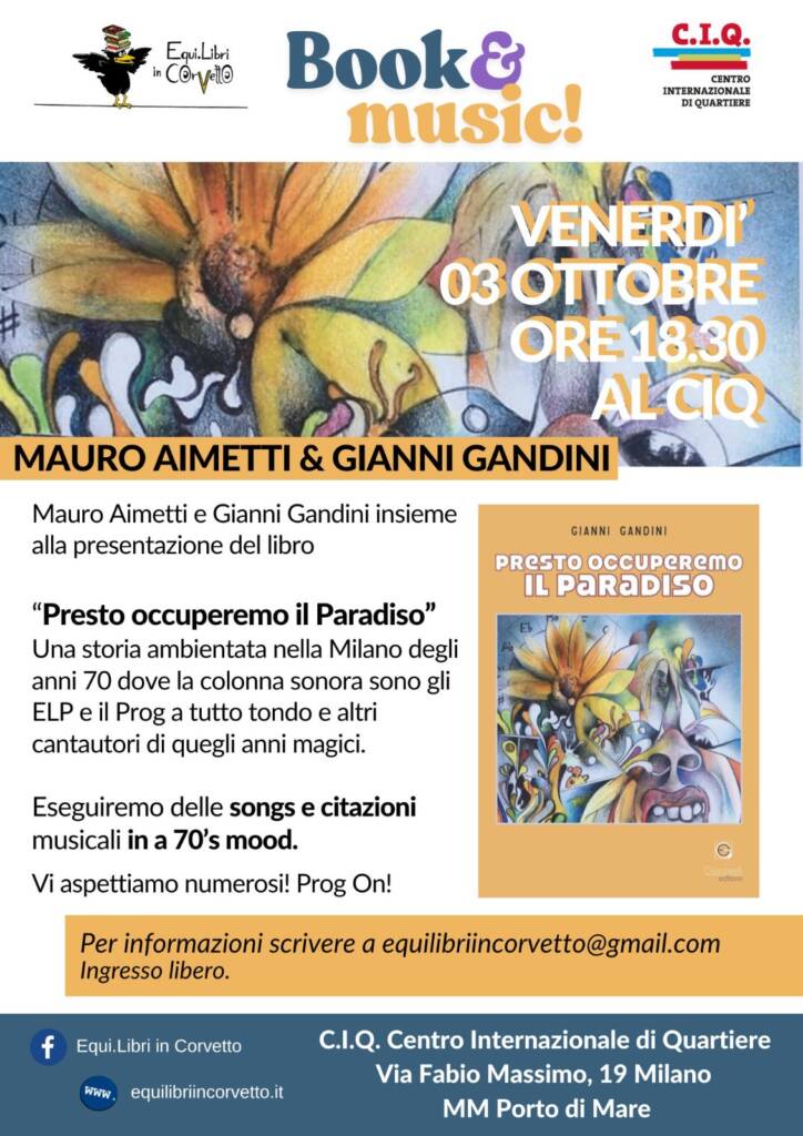 La presentazione si svolge alternando la lettura del libro a delle songs e citazioni musicali in the mood of the 70’ years, suonate Live da Mauro Lake Aimetti Guitar & Vocals (Leader Emerson, Lake & Palmer Project, Harvest Project) e da Gianni Gandini Keyboards, l’autore del romanzo.
